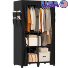 Portable Clothes Rack Organizer Wardrobe W/ Dustproof Cover Easy Setup New