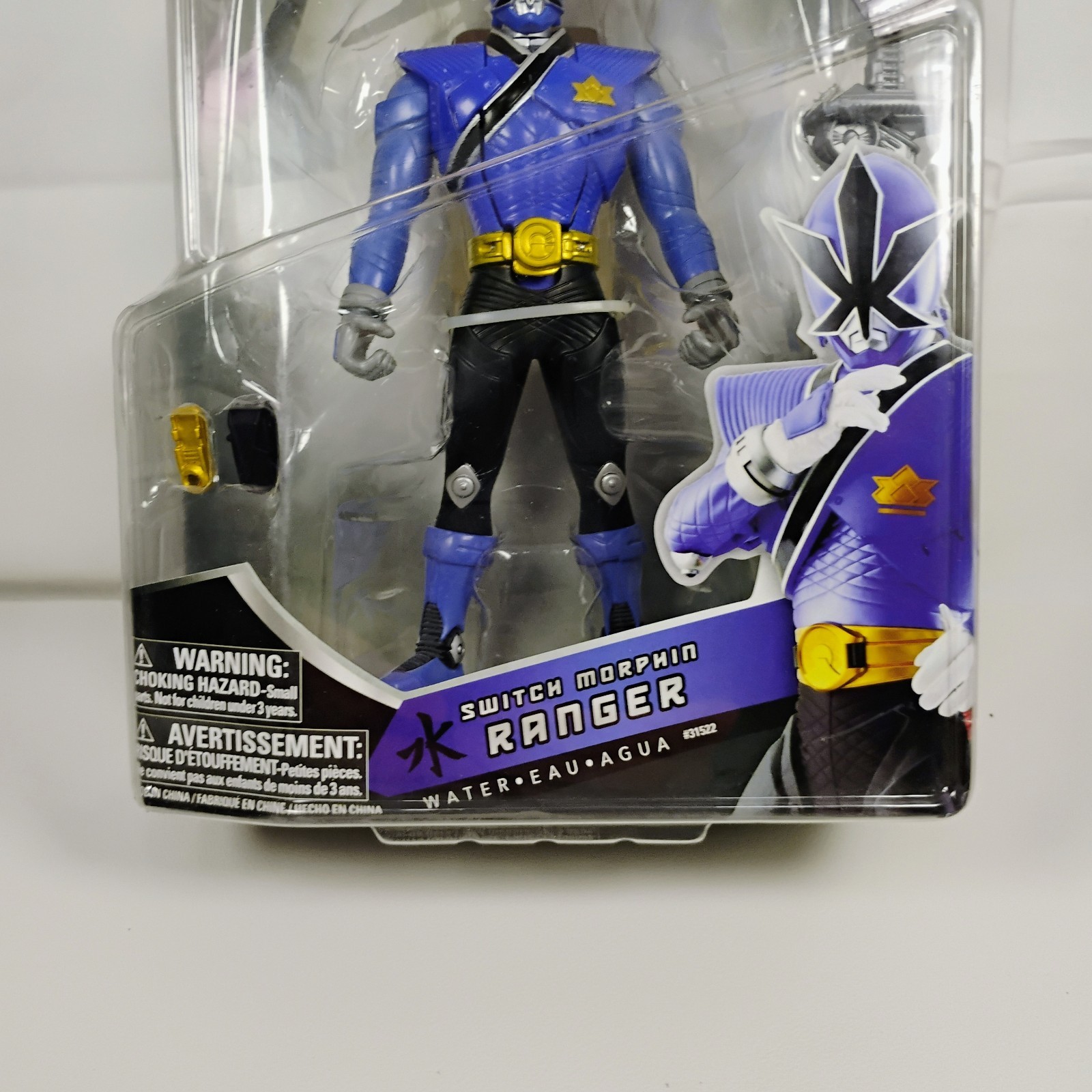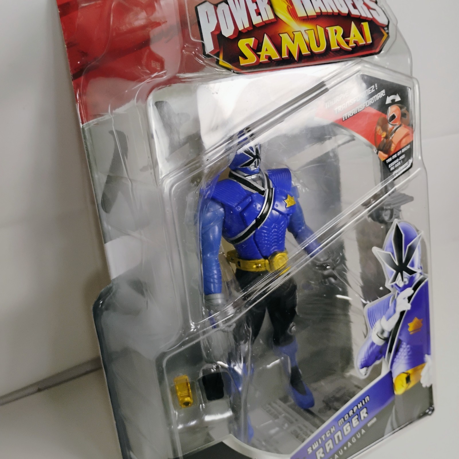 The Power Rangers Samurai Switch Morphin Water 2011 is a new in package Bandai action figure featuring a character from the Power Rangers franchise. This particular figure is designed as a Samurai with a blue color scheme, reflecting the theme of the popular TV show. Manufactured in 2011, this collectible toy captures a specific moment in the series and is sure to be a valuable addition to any Power Rangers fan's collection.