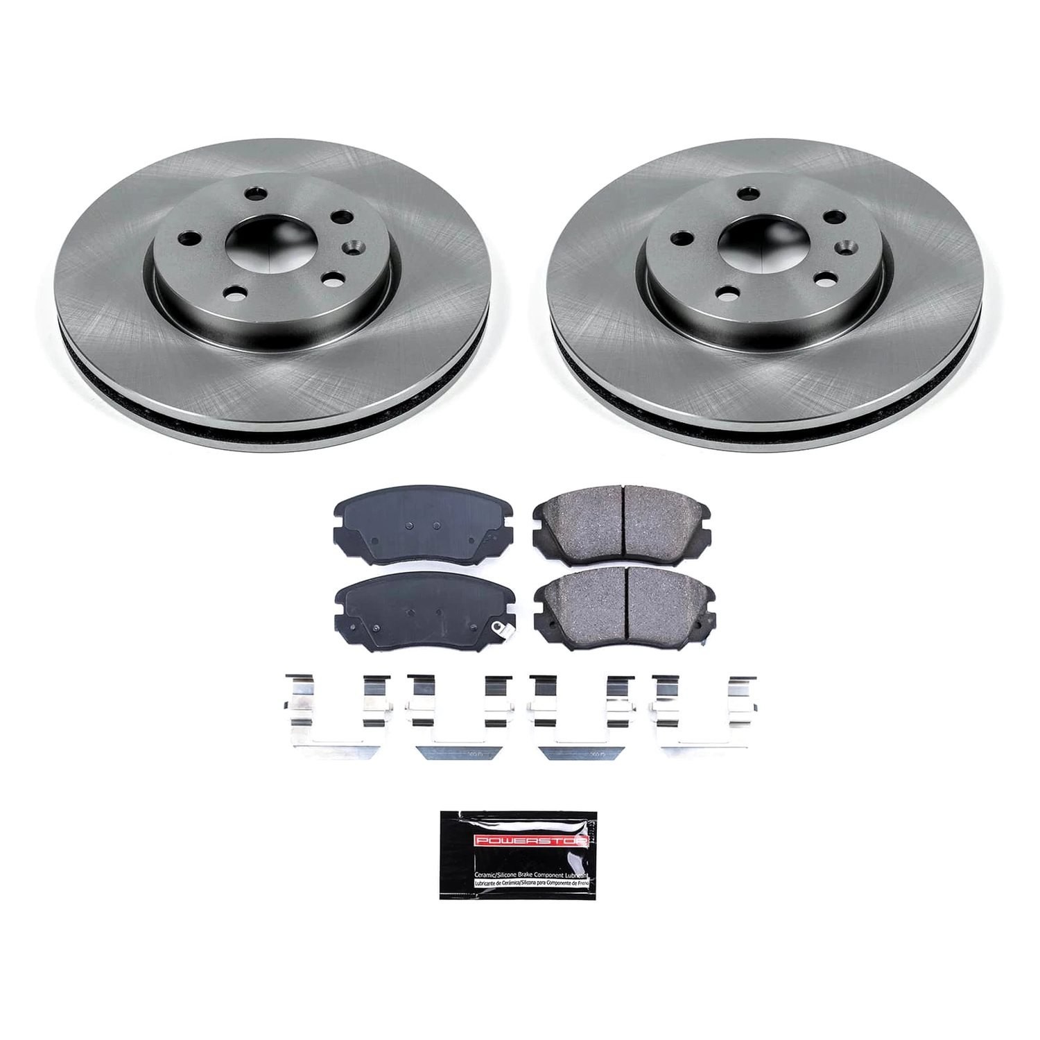 1-Click Autospecialty OE Replacement Plain Front Brake Kit without Calipers (KOE5334) by PowerStop®. Sold as Kit. Engineered for spirited daily drivers looking to upgrade their vehicle's stopping power, this brake kit is a fast, easy and affordable solution for improved braking. It includes a complete set of Autospecialty OE replacement brake rotors and high performance Z17 Evolution ceramic pads.