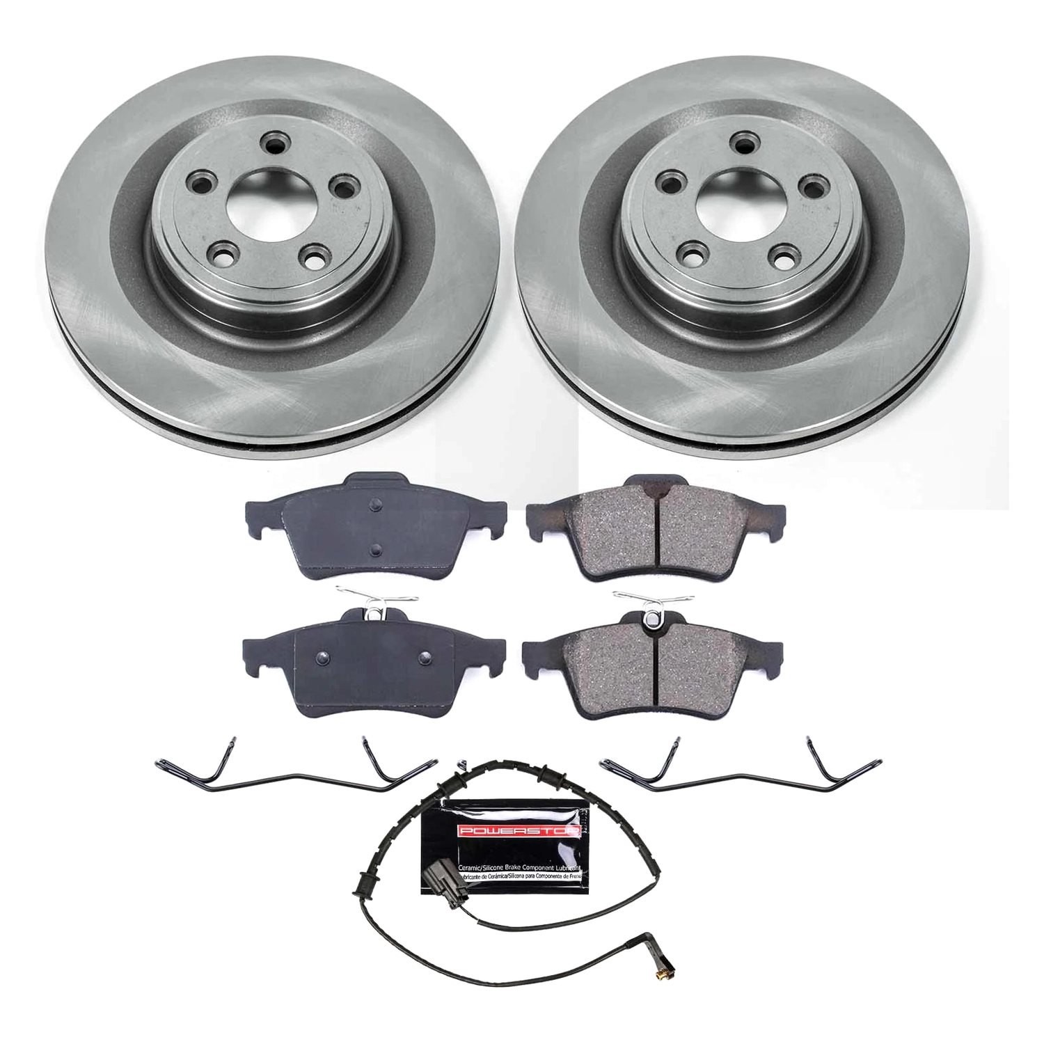 1-Click Autospecialty OE Replacement Plain Rear Brake Kit without Calipers (KOE6279) by PowerStop®. Sold as Kit. Engineered for spirited daily drivers looking to upgrade their vehicle's stopping power, this brake kit is a fast, easy and affordable solution for improved braking. It includes a complete set of Autospecialty OE replacement brake rotors and high performance Z17 Evolution ceramic pads.