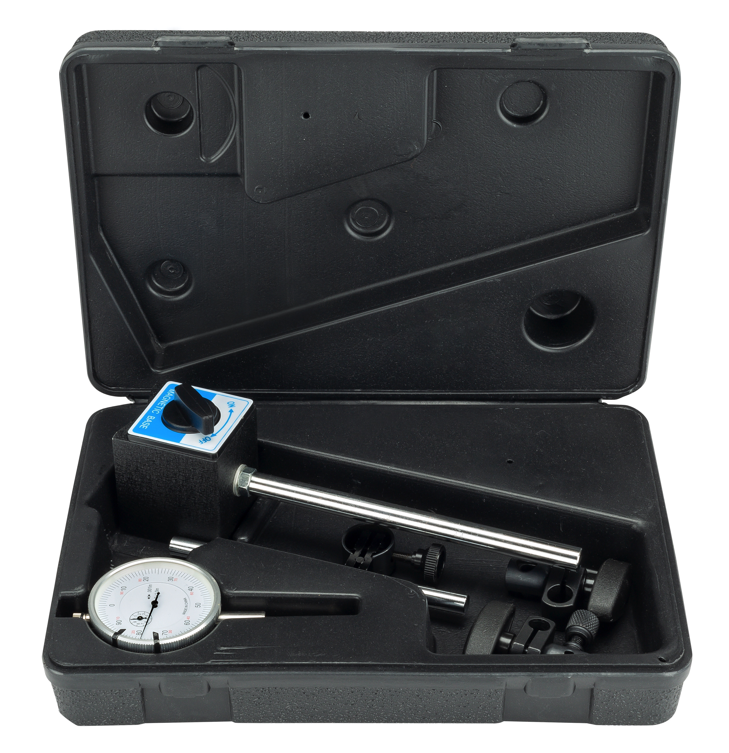 Experience unparalleled precision with the Powerbuilt Precision Dial Indicator. This tool offers outstanding accuracy for tasks where precision is paramount. Its built-in magnetic base ensures a secure attachment to ferrous surfaces, allowing for hands-free measurements, and saving you time and effort. The large, easy-to-read dial display provides clear and precise measurements, eliminating the need for complex calculations. This versatile tool is suitable for various applications, from checking machine component alignment to measuring runout and deflection, making it indispensable in automotive, machining, and manufacturing industries. Crafted from high-quality materials, the Powerbuilt Precision Dial Indicator is durable, resistant to wear and tear, and built to last through professional use. Convenient storage case included.