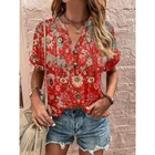 Printed Notched Short Sleeve Blouse