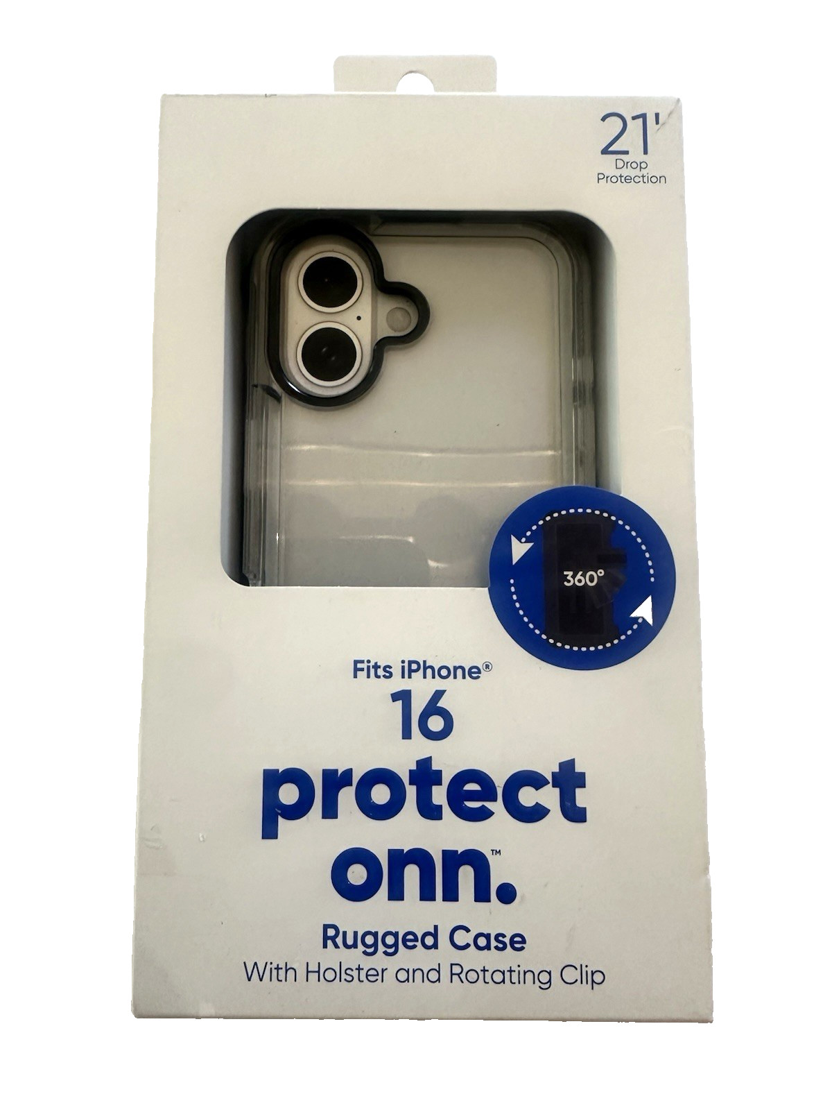 Protect Onn iPhone 16 Pro Compatible Rugged Case w/ clip 21' Drop Tested NIB Clear