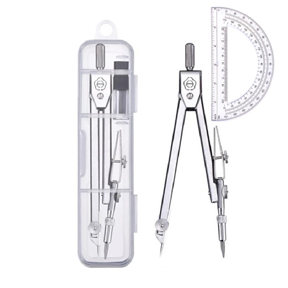 2 Piece math set:,compass and protractor are great for drawing circle and measuring angle, good for students, teachers, engineers, designers, artists, etc.; Our compasses use pencil lead refills instead of pencils; Please note pencil lead refills are easy to break, please use them gently.