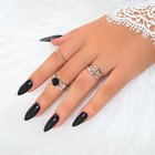 Multiple 3pcs Black Enamel Geometric Minimalist Silver Stackable Finger Ring Set
