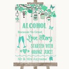Green Rustic Wood Alcohol Bar Love Story Personalised Wedding Sign
