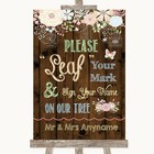 Rustic Wood Effect Guestbook Tree Message Personalised Wedding Sign