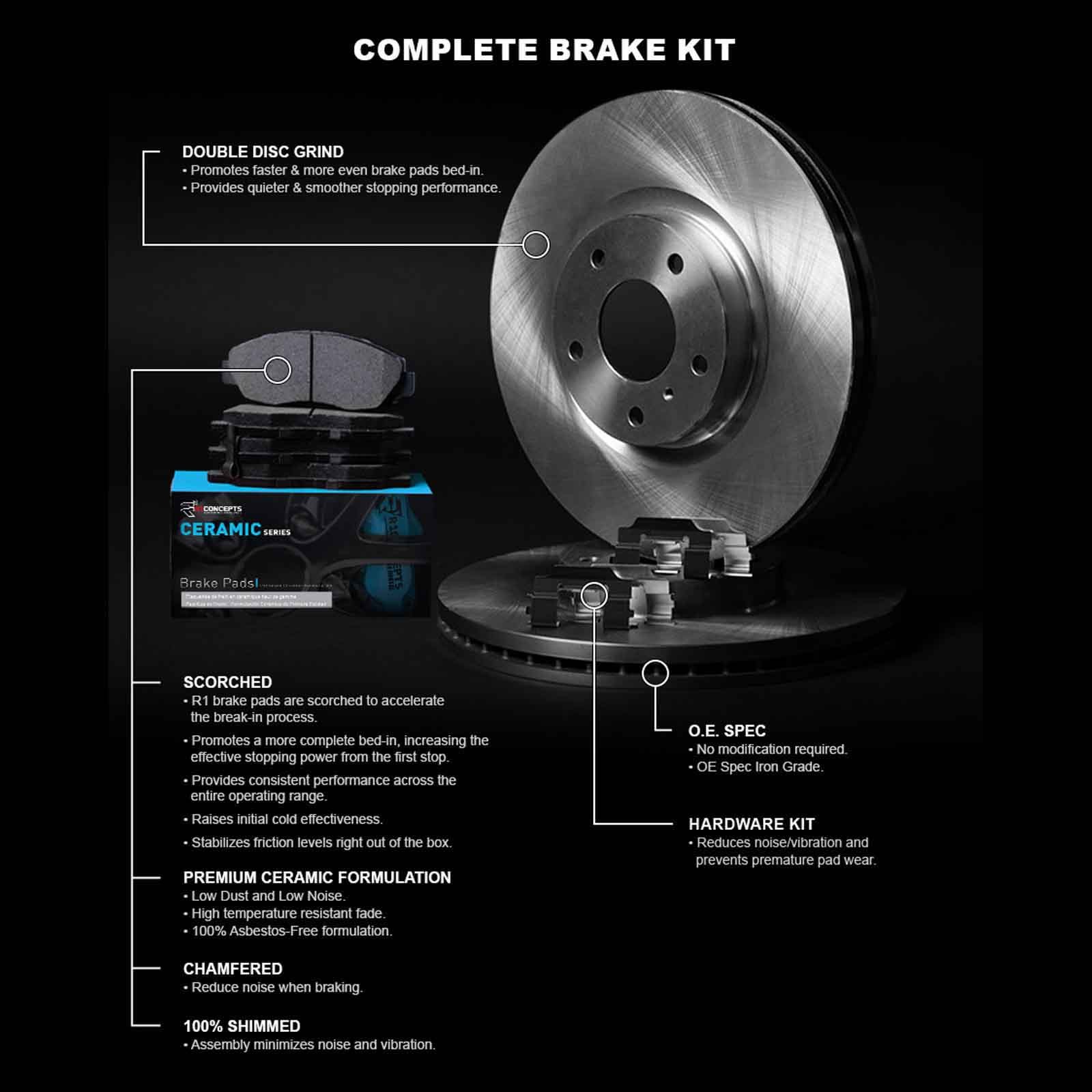 WFWH1-45021 R1 Concepts Brake Disc and Pad Kits 2-Wheel Set Front for Chevy 9-5