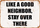 METAL SIGN - LIKE A GOOD NEIGHBOR STAY OVER THERE - Vintage Look
