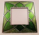 ☘🔳🍀 Irish! Chrome Metal Glass Celtic Style Sparkly Green Acrylic Picture Frame