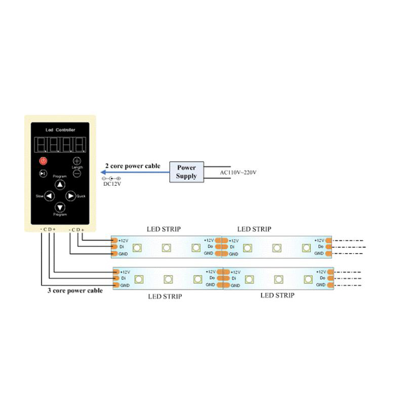 MODE: Play/pause button, pressing this button to pause, you can see the static affection of led.