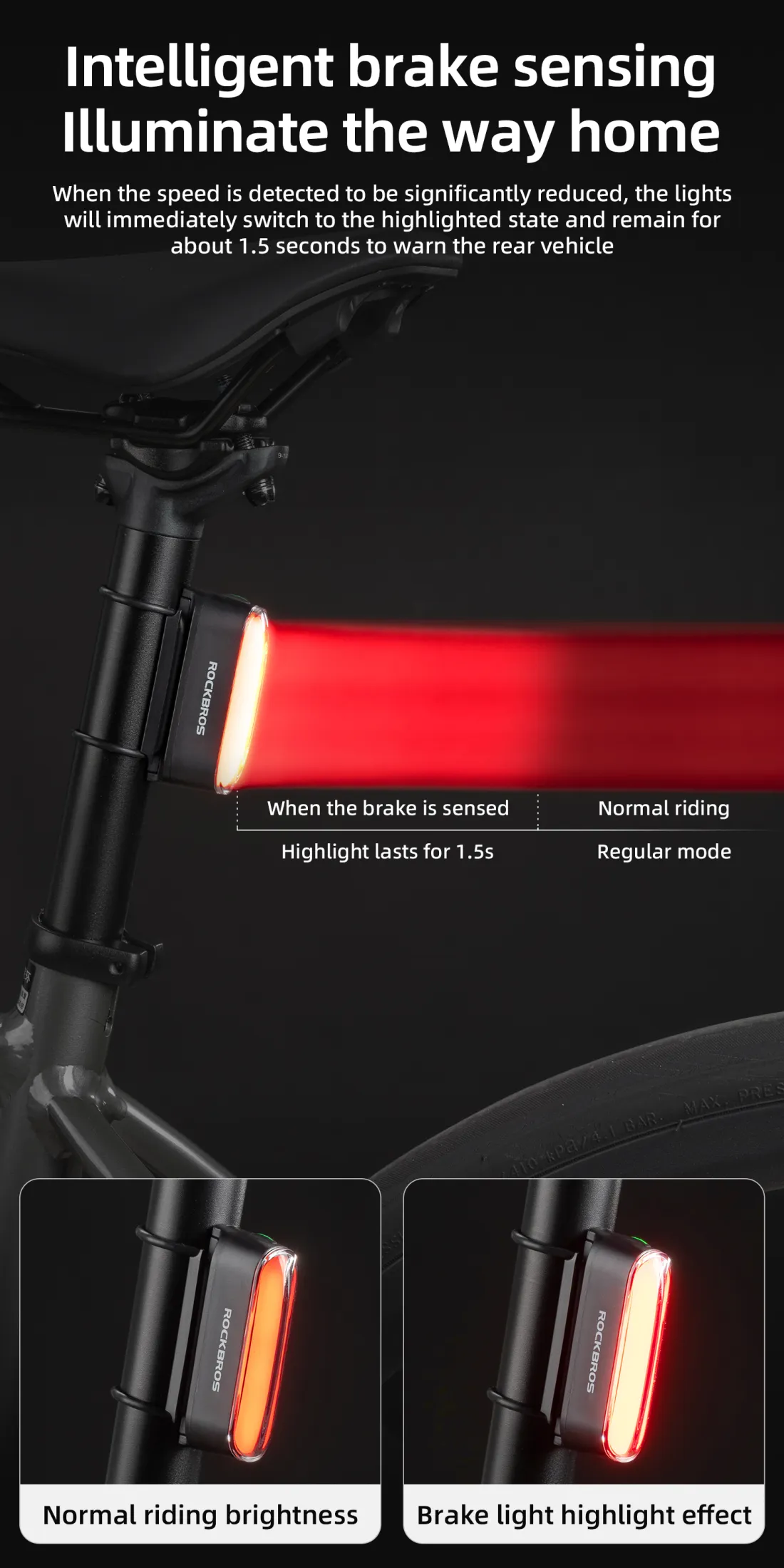 1.Brake I Light sense Vibration sensing Windbreaker Magnetic Smart Tail Light