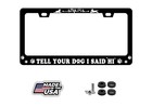 TELL YOUR DOG I SAID HI License Plate Frame, Black Metal and white vinyl