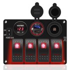 Red 4 Gang Marine Boat Rocker Switch Panel 12V/24V Waterproof LED Toggle Voltmet