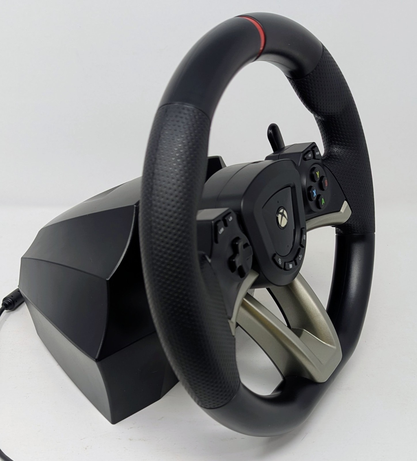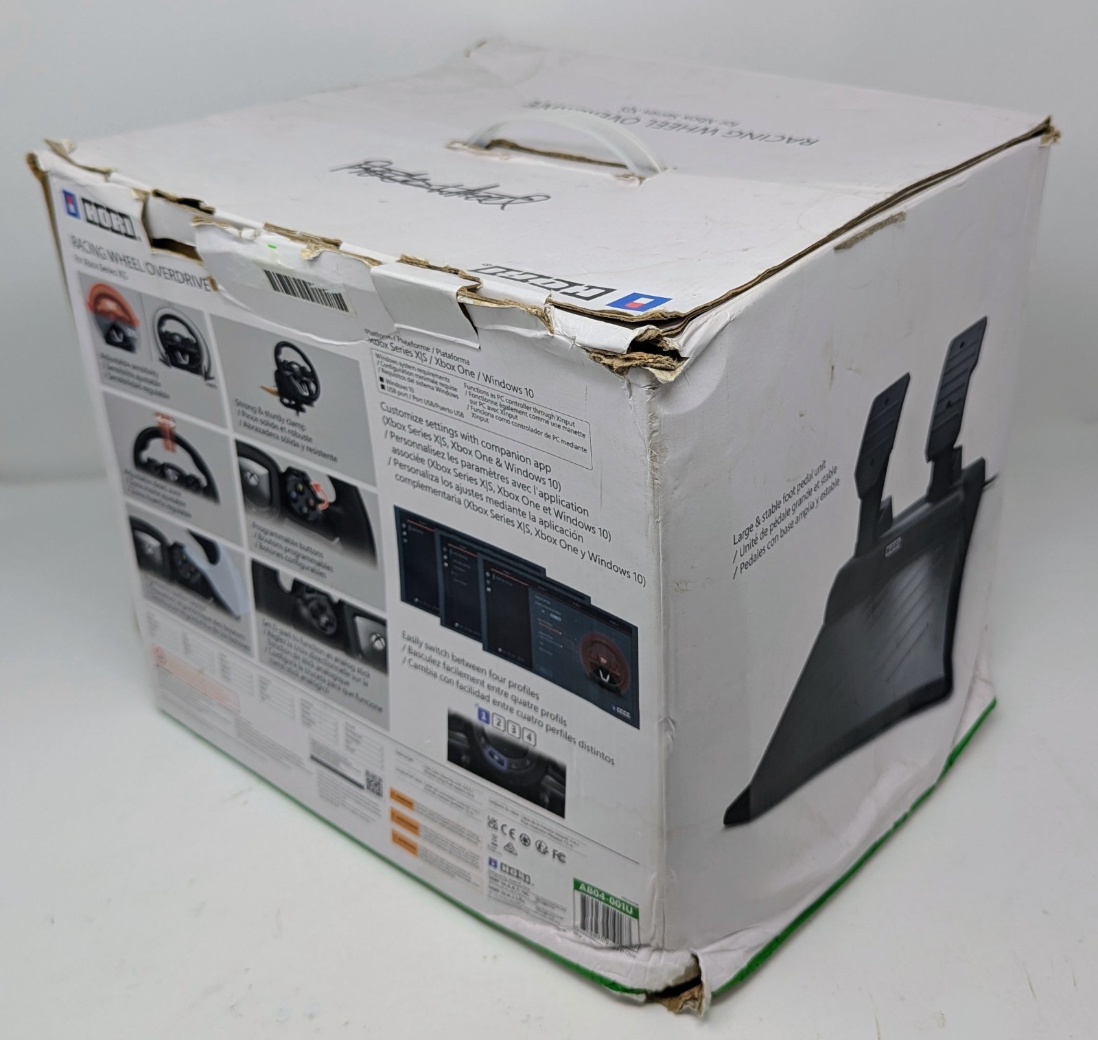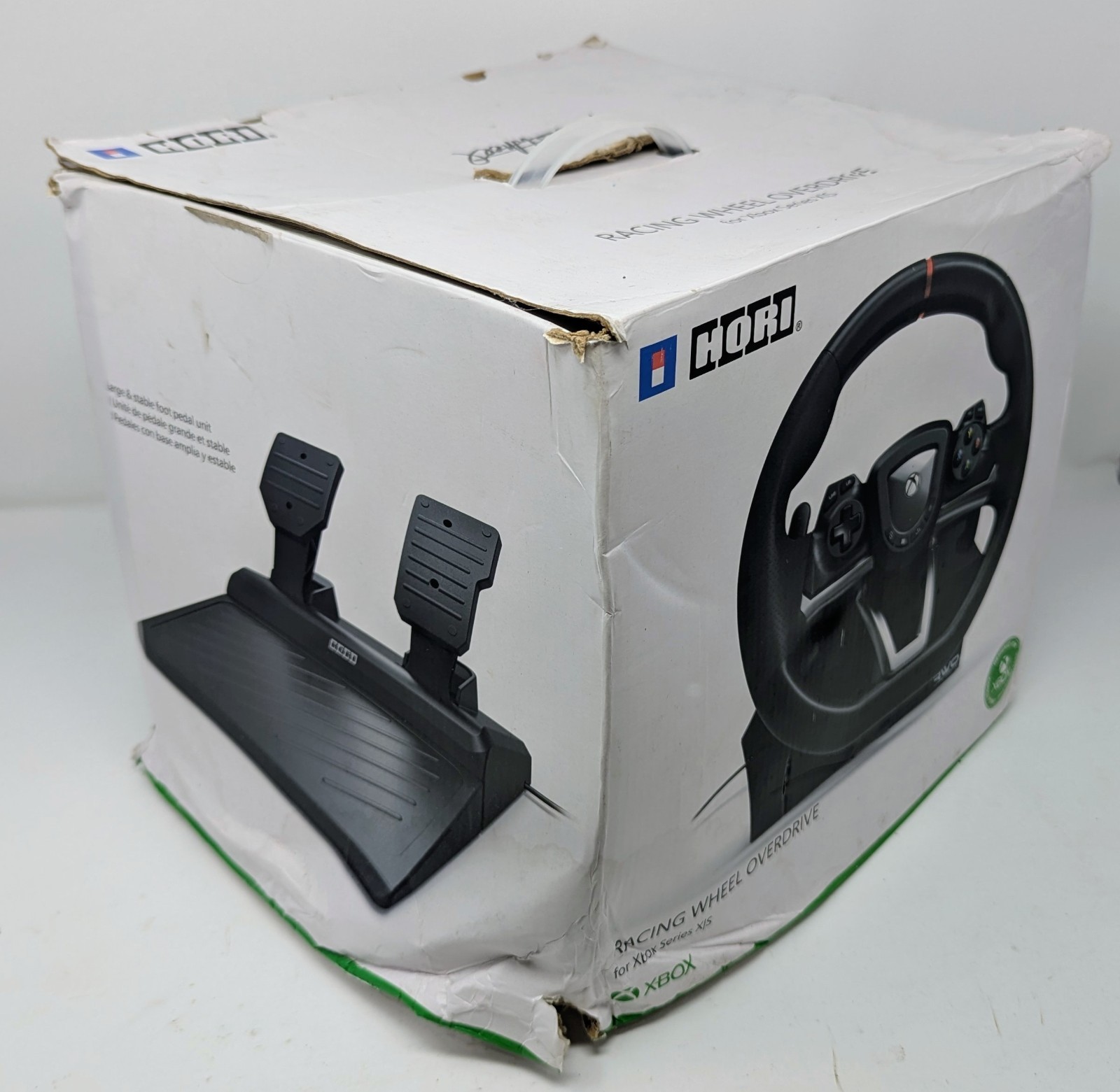 Racing Wheel Overdrive Controller for Xbox Series X|S - HORI. The controller has been tested and works great. The controller is in good condition with some signs of wear as shown in the pictures. The box shows signs of heavy wear and damage as shown in the pictures.