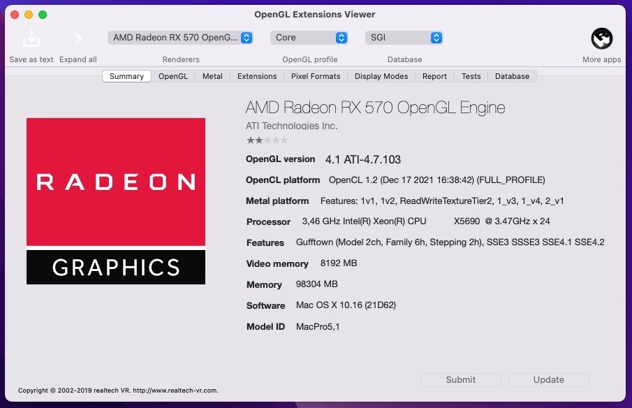 Radeon RX 570 8GB 256-bit GDDR5 is a performance-segment Metal graphics card modified for Mac Pro models 4,1 - 5,1 (2009-2012) to show -