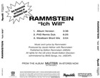 RAMMSTEIN "Ich Will" US Promo CD 3 Mixes 2001 UNIR-20624-2 Mutter