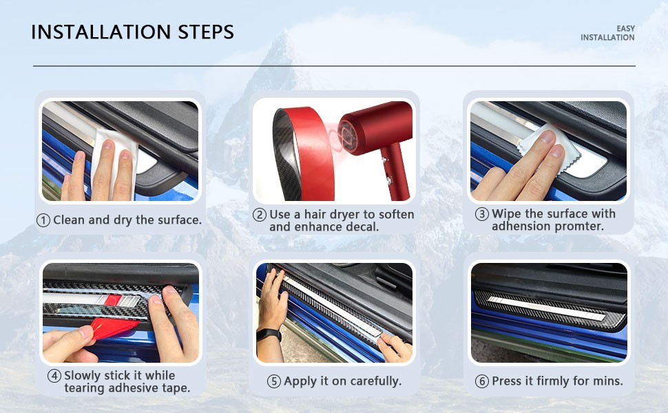3. Make sure the Temperture is not too low,if it is in Winter when your installation,please make the carbon fiber warm by Hot air blowe so it will be soft and easy to be installed.