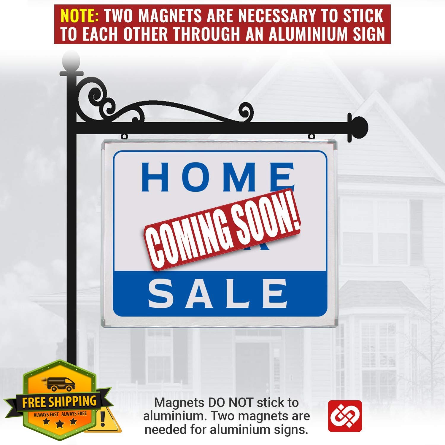 - 𝗣𝗹𝗲𝗮𝘀𝗲 𝗧𝗲𝘀𝘁 𝗬𝗼𝘂𝗿 𝗥𝗲𝗮𝗹𝘁𝗼𝗿 𝗦𝗶𝗴𝗻 𝘄𝗶𝘁𝗵 𝗮 𝗠𝗮𝗴𝗻𝗲𝘁 𝗕𝗲𝗳𝗼𝗿𝗲 𝗣𝘂𝗿𝗰𝗵𝗮𝘀𝗶𝗻𝗴 – You need two magnets if your sign is aluminum! The magnets stick to each other through aluminum signs. We want you to be happy about your purchase! Magnets do not stick to real estate signs made from aluminum.