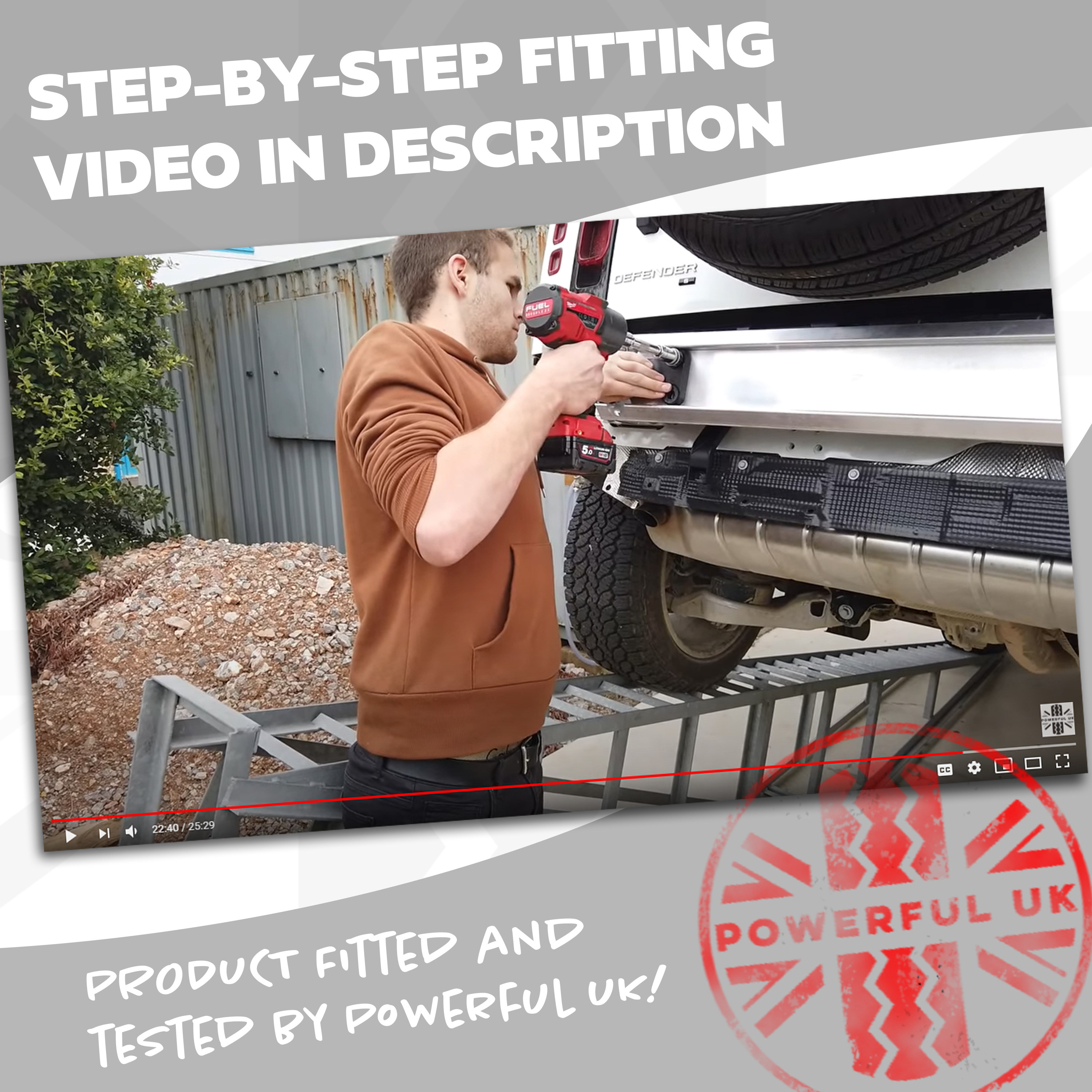 All fitting instructions and videos provided by Powerful UK Ltd are for advice and guidance only and should only be followed once an assessment has been made by the operator of the task, vehicle compatibility, impacts on safety etc.Powerful UK Ltd shall have no liability for any issues or damage caused when fitting our parts. Powerful UK Ltd will not be responsible for any errors or omissions or for the results obtained from the use of such information.