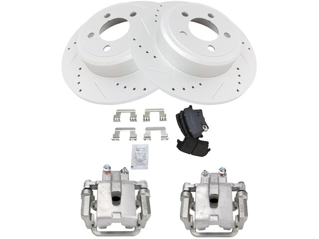 Package Contents: (1) Rear Semi-Metallic Brake Pad Set; (2) Rear Brake Calipers; (1) Rear Premium G-Coated Performance Brake Rotor Set