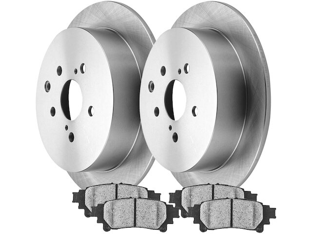 Package Contents: (2) Rear Disc Brake Rotors (Both Sides), (1) Rear Ceramic Brake Pad Set