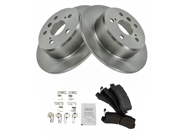 Package Contents: (2) Rear Brake Rotors; (1) Rear Semi-Metallic Brake Pad Set; (1) Brake Cleaner & Fluid Kit