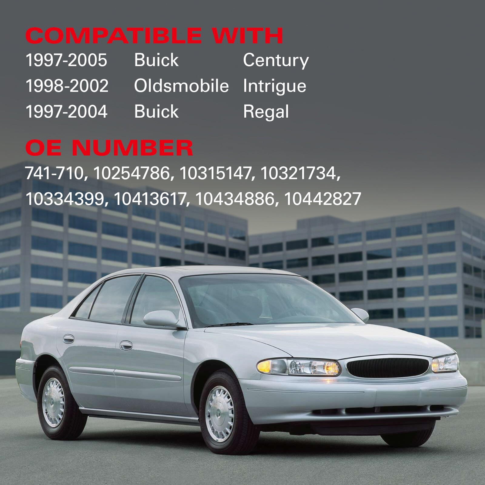 For Buick: 1997-2005 Century 3.1L 1997-2004 Regal 3.8L For Oldsmobile: 1998-1999 Intrigue 3.8L 1999-2002 Intrigue 3.5L