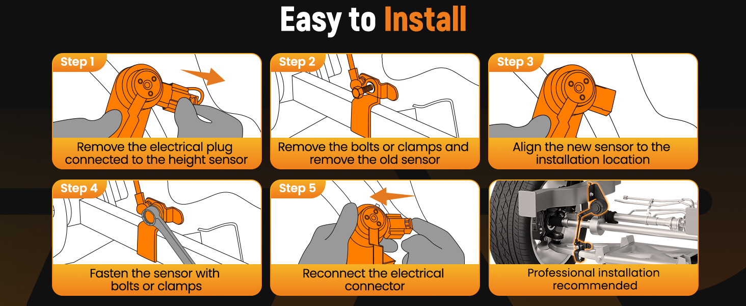 Fast Response- Restores the vehicle's ability to respond to road conditions Easy Installation- Direct fit for fast plug and play installation Stable performance & High reliability Meet Needs- Products are made from premium materials to ensure quality. Long Service Life- During each step of production multiple quality control checks are performed to insure each and every part lasts for years to come.