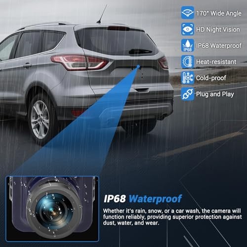 170° Wide-Angle View: The 170° ultra-wide field of view greatly reduces rear blind spots, giving you a clear and comprehensive perspective of your surroundings while reversing or parking. This HD Rear View Backup Camera is encased in a durable IP68 waterproof ABS housing, built to withstand rain, snow, dust, and extreme temperatures for long-lasting performance in all driving conditions.