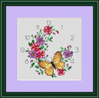 #752 Butterfly & Flowers clock X stitch kit with clear chart & quality threads