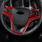 For Chevrolet Camaro 2010-2015 Red Carbon Fiber Steering Wheel Cover Trim 3PCS