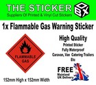 Flammable gas warning / hazard safety printed sticker cars vans catering trailer