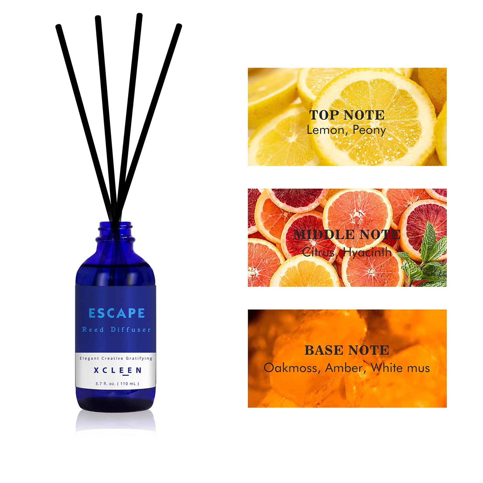 AROMATIC REED DIFFUSER: Includes (1) 6 rattan oil diffuser sticks, (2) an elegant dark bule glass vase and (3) premium natural mixture essential oil (3.7oz 110ml), good for 55-70 days continuous fragrance