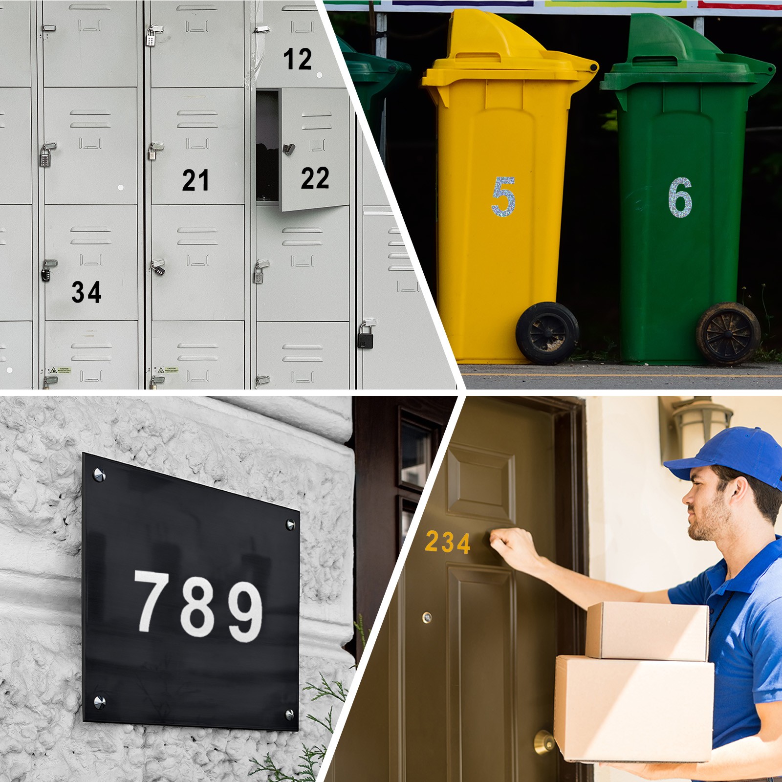 Our adhesive mailbox numbers can be easily applied to any clean and dry surface, making them suitable for mailbox, house, street, and address numbers. They can also serve as outdoor signage contact numbers, lockers, outdoor trash cans, vehicle decoration, and more. These numbers are versatile markers and signs for various applications.