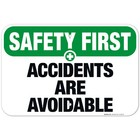 Accidents Are Avoidable Sign, OSHA Safety First Sign,