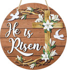 He is Risen Round Sign - Easter Decorations Cross Wall Hanging, Christian Fro...