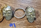 Handmade white starburst pressed flower resin skull keychain