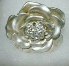Silver Metallic Flower Rose Ring w Rhinestone Crystals & Stretch Band》Flaw