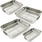 4PC STAINLESS STEEL ROASTING OVEN PAN DISH BAKING ROASTER TIN GRILL RACK + TRAY