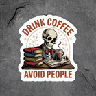 Book lover sticker vinyl decal skeleton drink coffee avoid people bookish