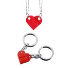 4pcs Heart Lego Couple Necklace Key Ring Keychain Set Valentine's Day Gift