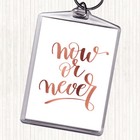 Rose Gold Now Or Never Quote Bag Tag Keychain Keyring