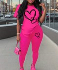 Women's 2-Piece Heart Print Casual Set - Short Sleeve Tee & Leggings - Stretchy,