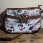 Rosetti Floral Pebbled Shoulder Bag White Brown Pink Blue Zip Closure Pockets