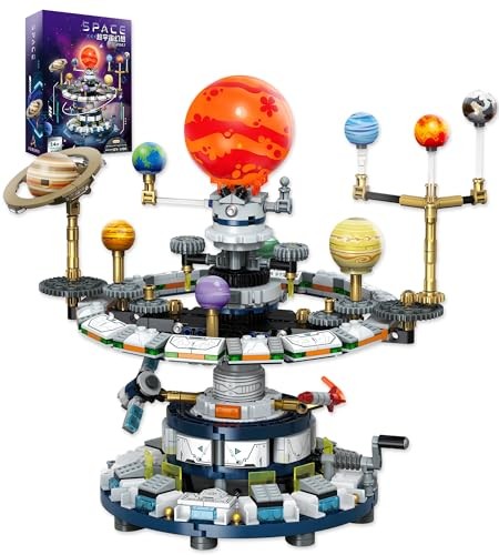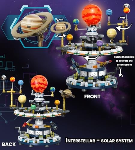 Rotating Solar System Building Kit: They can turn the handle to drive the planetary gears, simulating the orbit of all 8 planets around the sun. Perfect for demonstrating the relative sizes, colors, and movements of the Sun and 8 planets. This interactive mechanism offers a hands-on way to explore celestial motion and spark early interest in astronomy and mechanical engineering