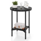Side Table Modern Round End Table with Faux Marble Top and Bottom Storage Shelf-