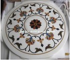 Round Marble Coffee Table Top Semi Precious Stone Inlay Work Corner Table Top