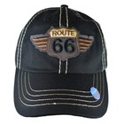 Route 66 Men's Hat - Embroidered,Adjustable Strap-back Baseball Style Cap- BLACK