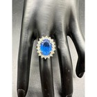 Royal Blue Faux Sapphire Cocktail Ring Silver Tone Rhinestone Halo Statement 7